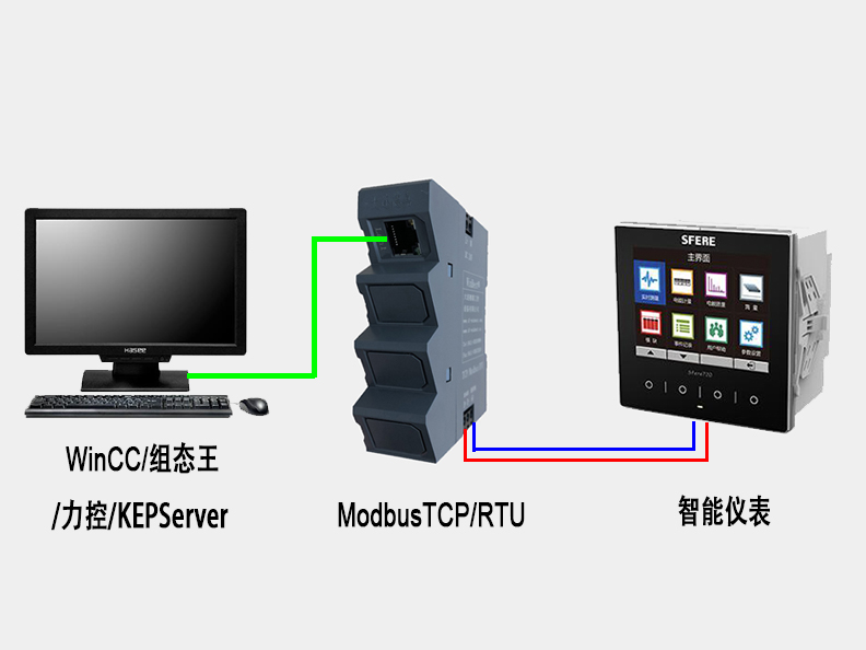 通過ModbusTCP/ModbusRTU,可將帶有ModbusRTU協(xié)議(RS485)通訊的設備,如:智能儀表、PLC、變頻器等直接與上位機通訊。